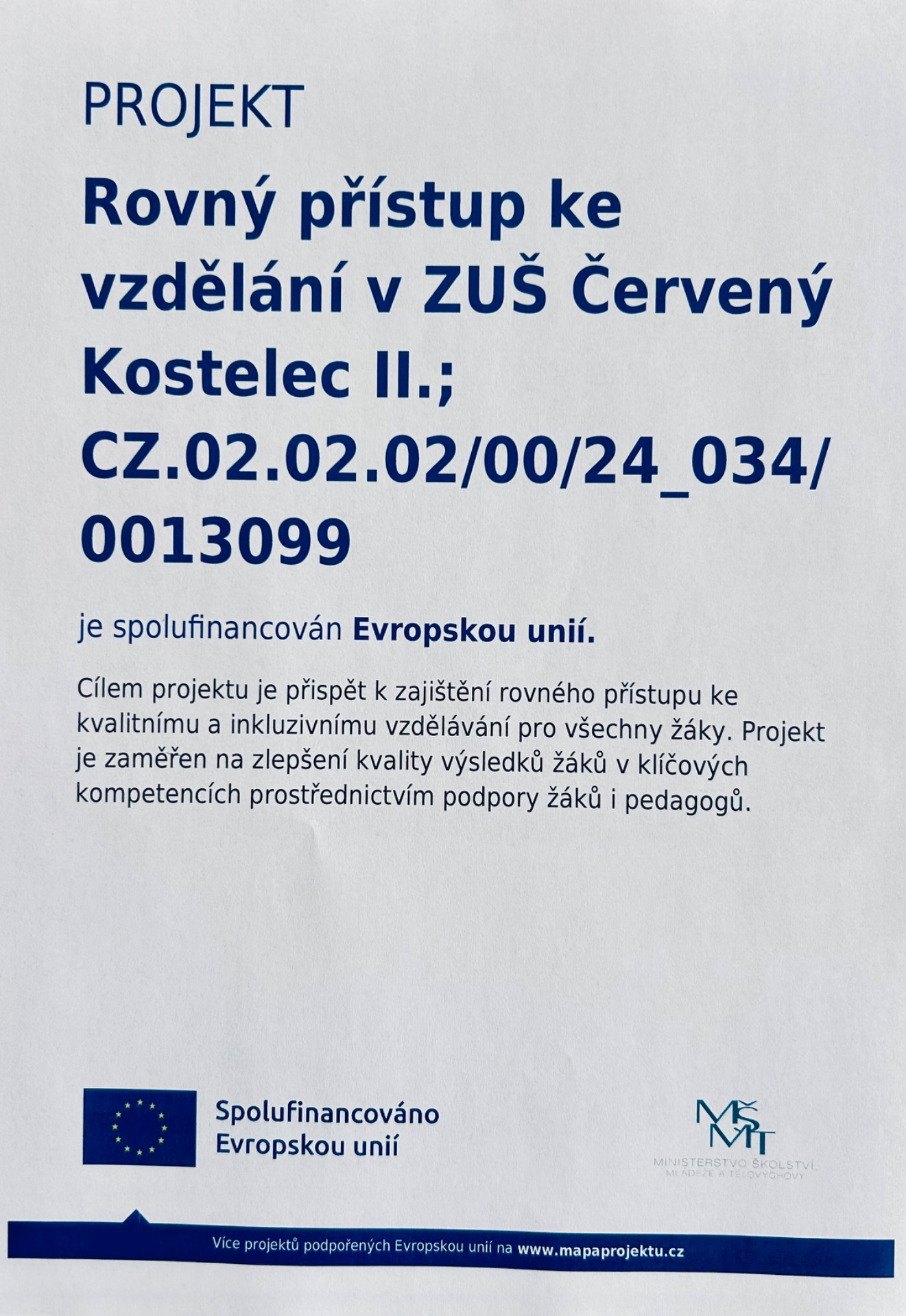 PROJEKT - Rovný přístup ke vzdělávání v ZUŠ Červený Kostelec